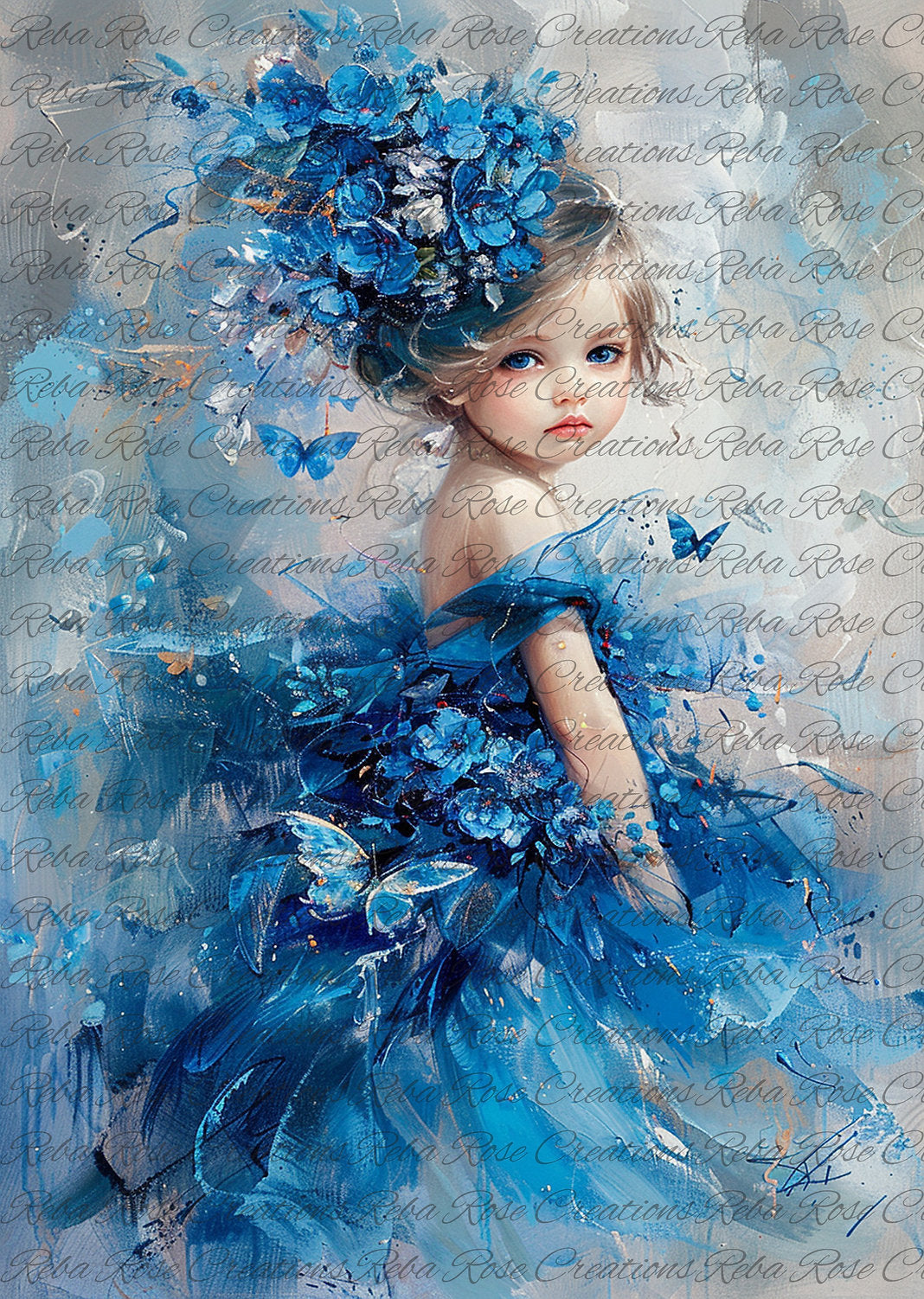 Reba Rose Creations, Rice Paper, Decoupage, Mixed Media, Blue Flower Baby