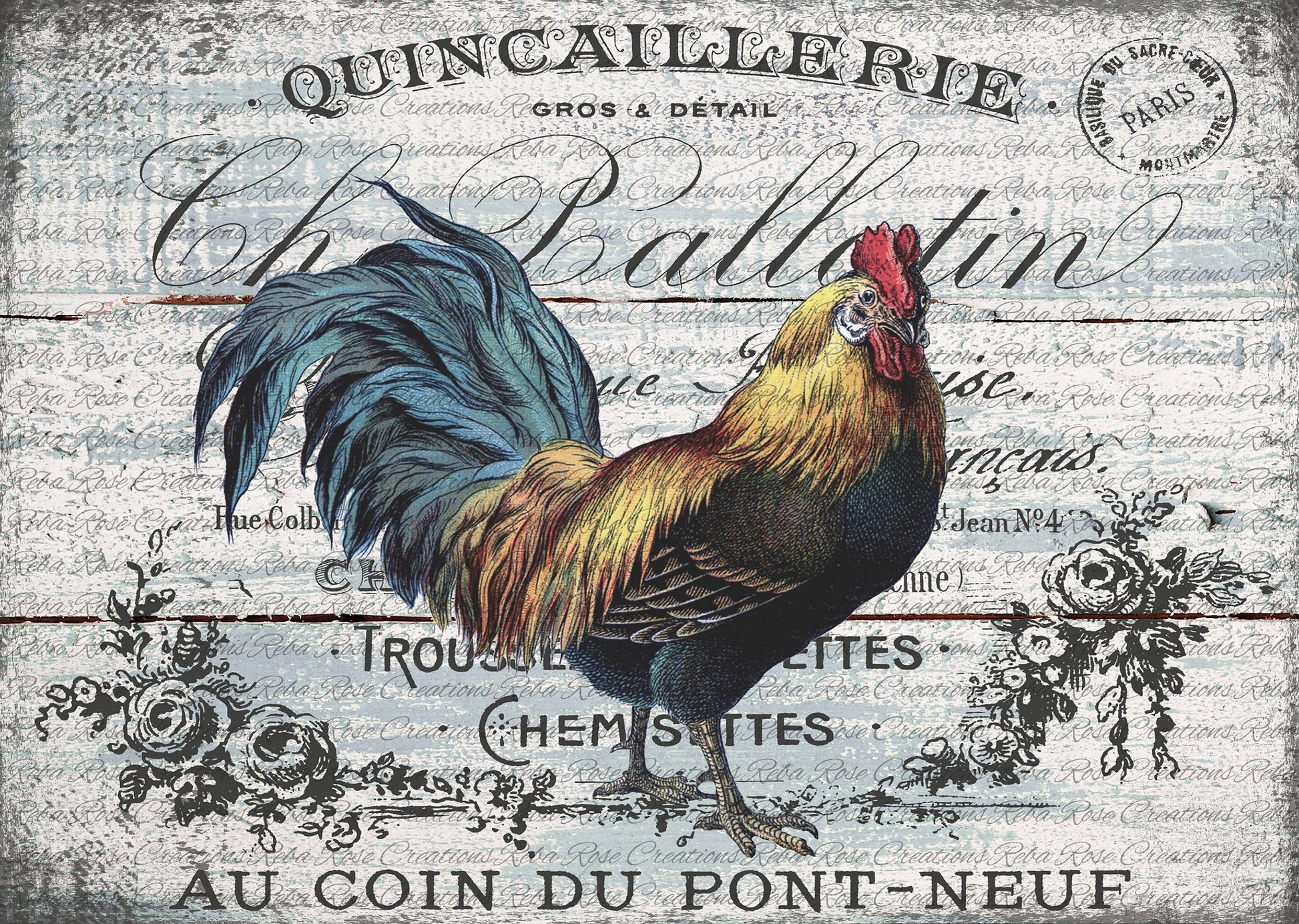 Reba Rose Creations, Rice Paper for Decoupage, Mixed Media, Country Rooster, Vintage Style, AVC-03 A4 8.27 X 11.6.