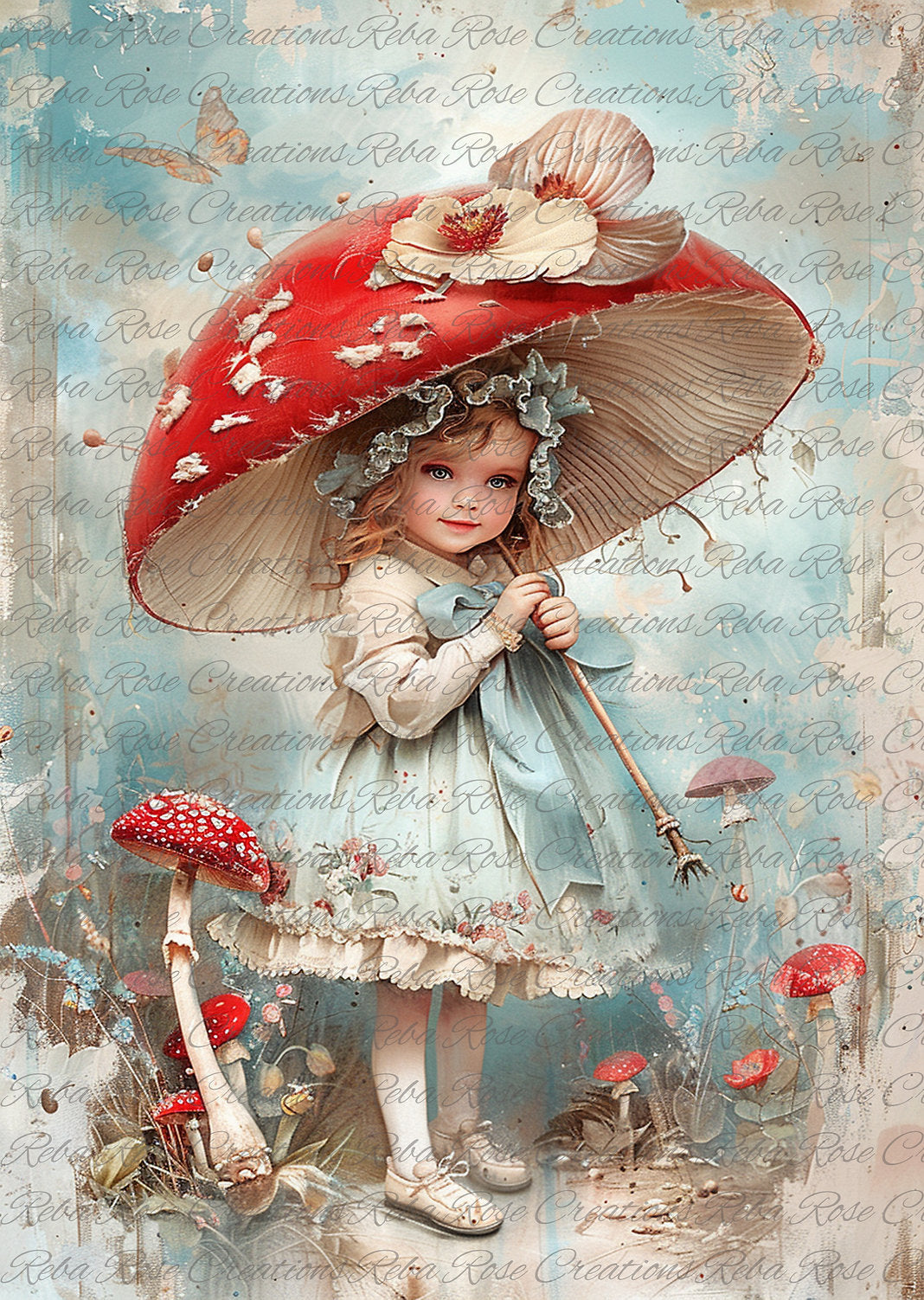 Reba Rose Creations, Rice Paper, Decoupage, Mixed Media, Mushroom girl, Baby