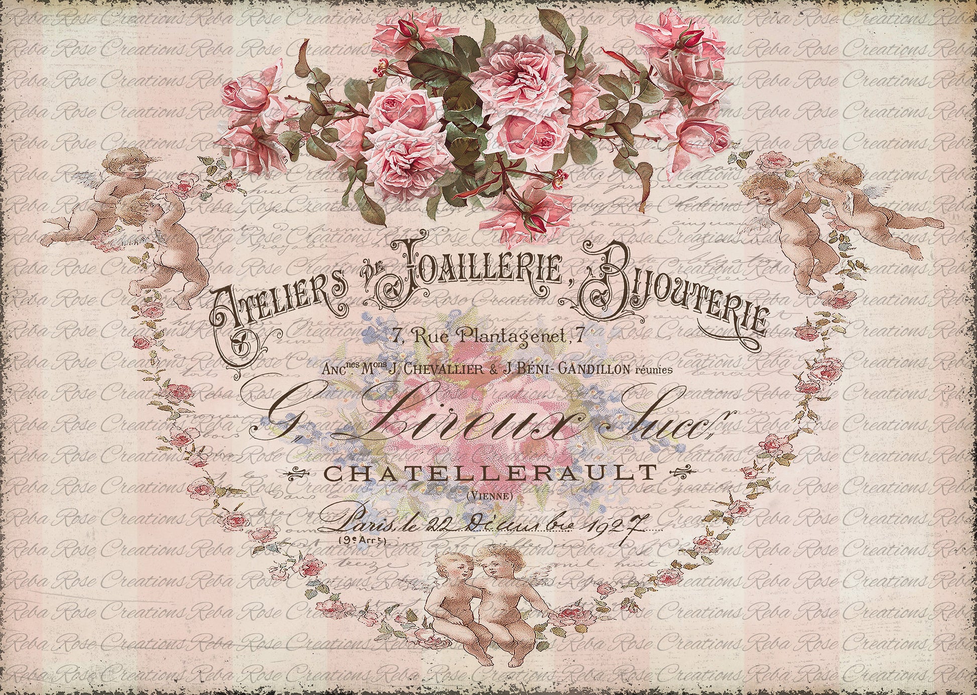 Reba Rose Creations, Rice Paper for Decoupage, Mixed Media, Roses, Cupids, Shabby Chic, Vintage Style, French, AVC-02 A4 8.27 X 11.6.