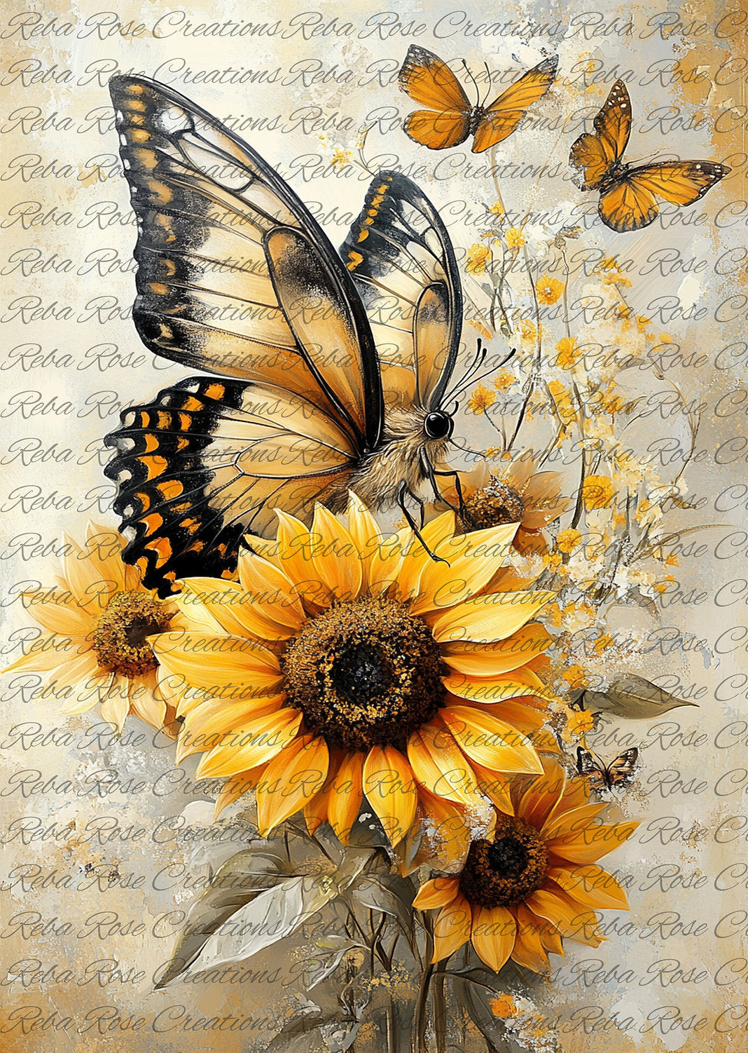 Reba Rose Creations, Rice Paper, Decoupage, Mixed Media, Sunflower, Butterflies