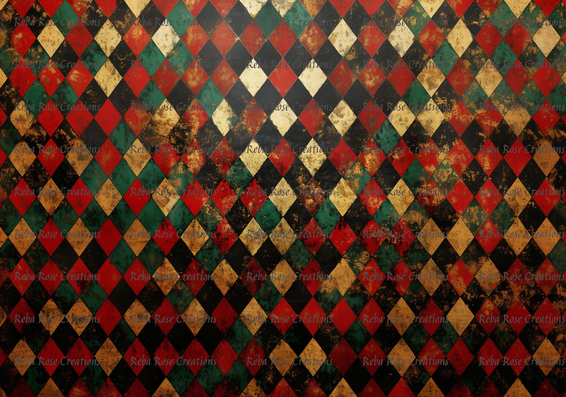 Reba Rose Creations, Rice Paper for Decoupage, Christmas, Harlequin, Background, Wallpaper, Shabby Chic, 1344, A4, 8.27 X 11.6