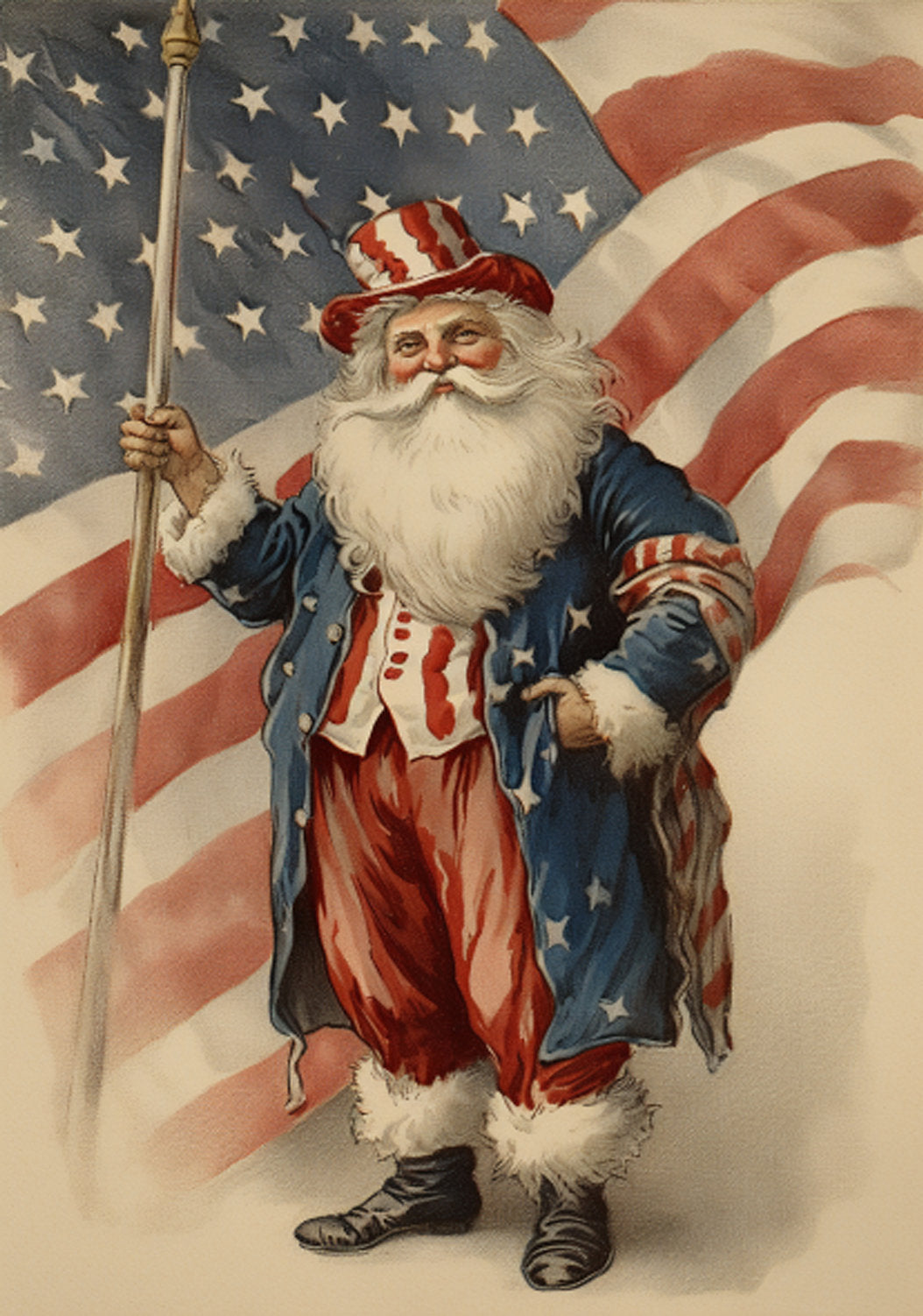Reba Rose Creations, Rice Paper for Decoupage, Mixed Media, Americana Santa, American Flag, Patriotic, A4 8.27 X 11.6