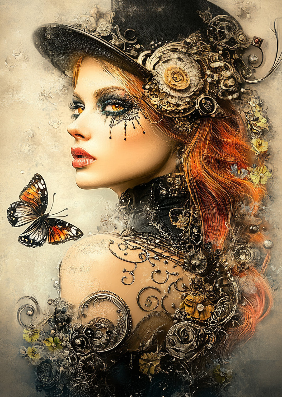 Reba Rose Creations, Rice Paper for Decoupage, Mixed Media, Elegant, Steampunk, White Beauty Woman, Lady, Butterfly, A4 8.27 X 11.6