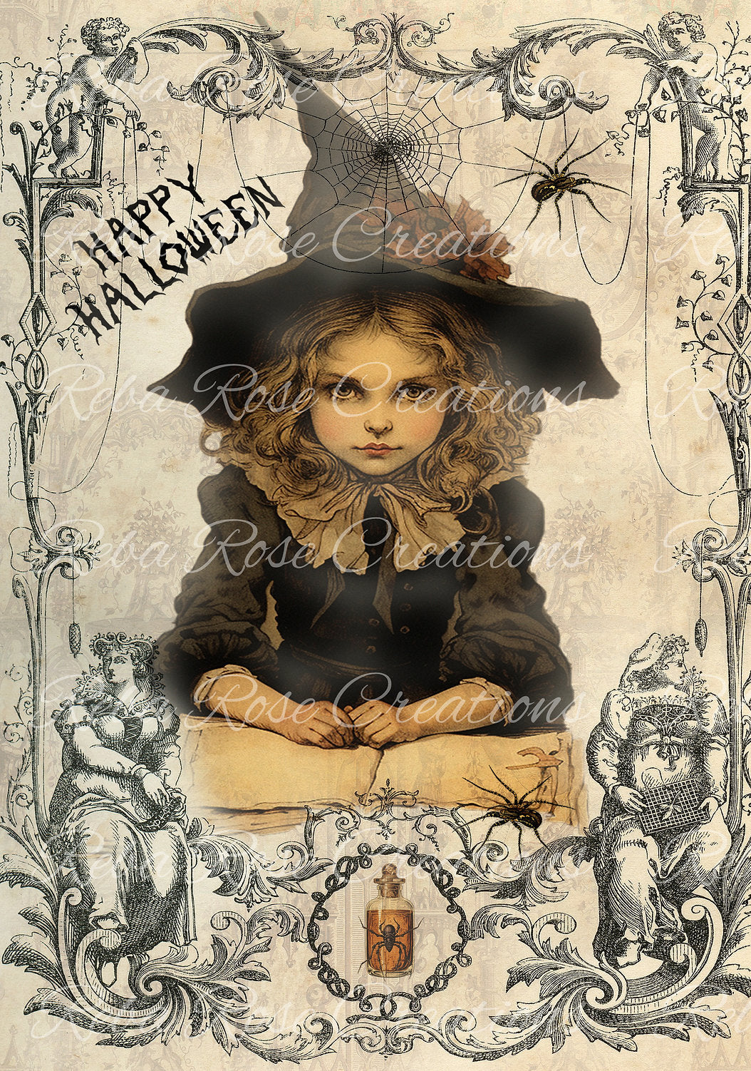 Reba Rose Creations, Rice Paper for Decoupage, Mixed Media, Halloween, Witch, Vintage Style, 0648 A4 8.27 X 11.6