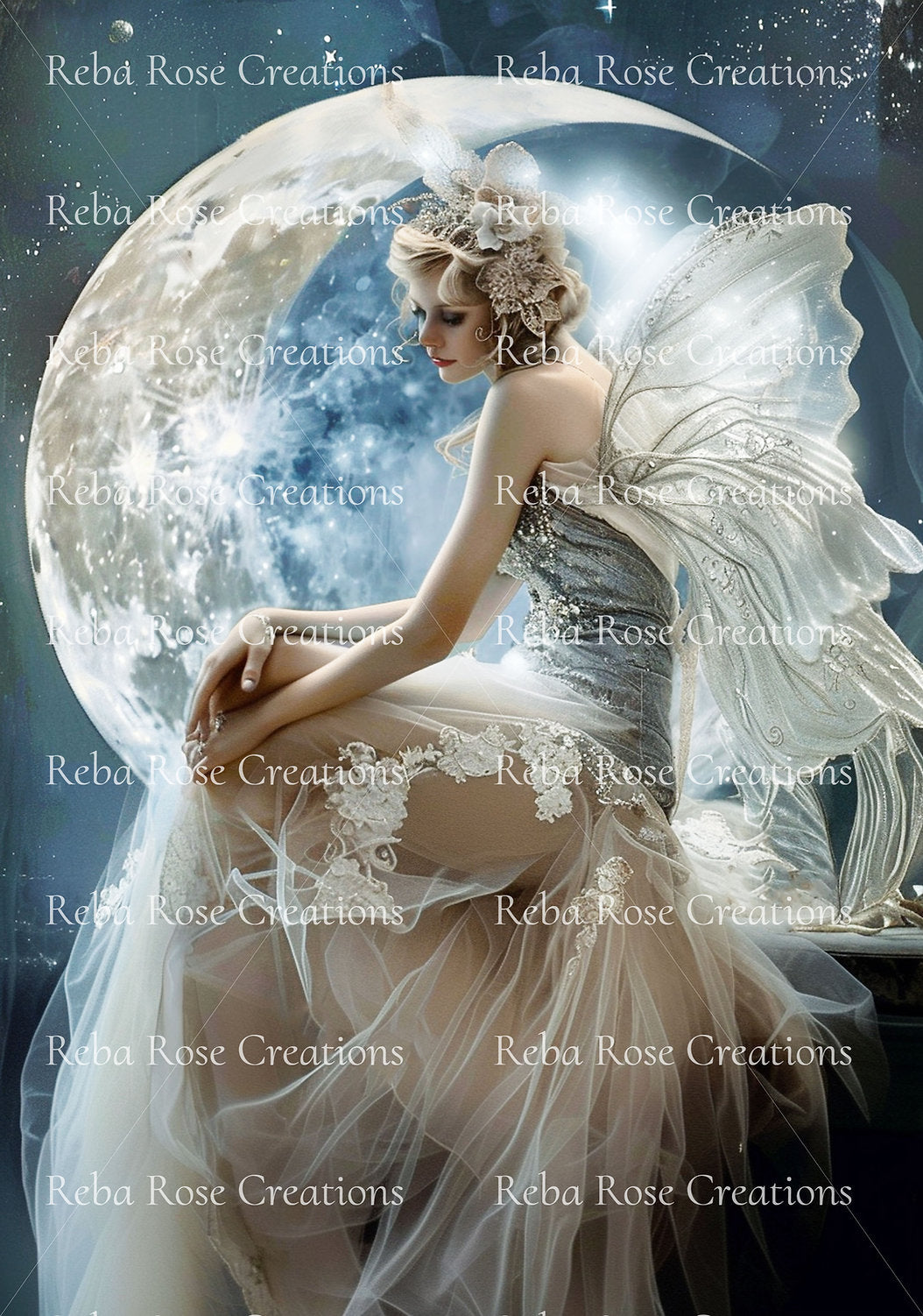 Reba Rose Creations, Rice Paper for Decoupage, Mixed Media, Heavenly, Moon Fairy, Shabby Chic, 1156, A4 8.27 X 11.6
