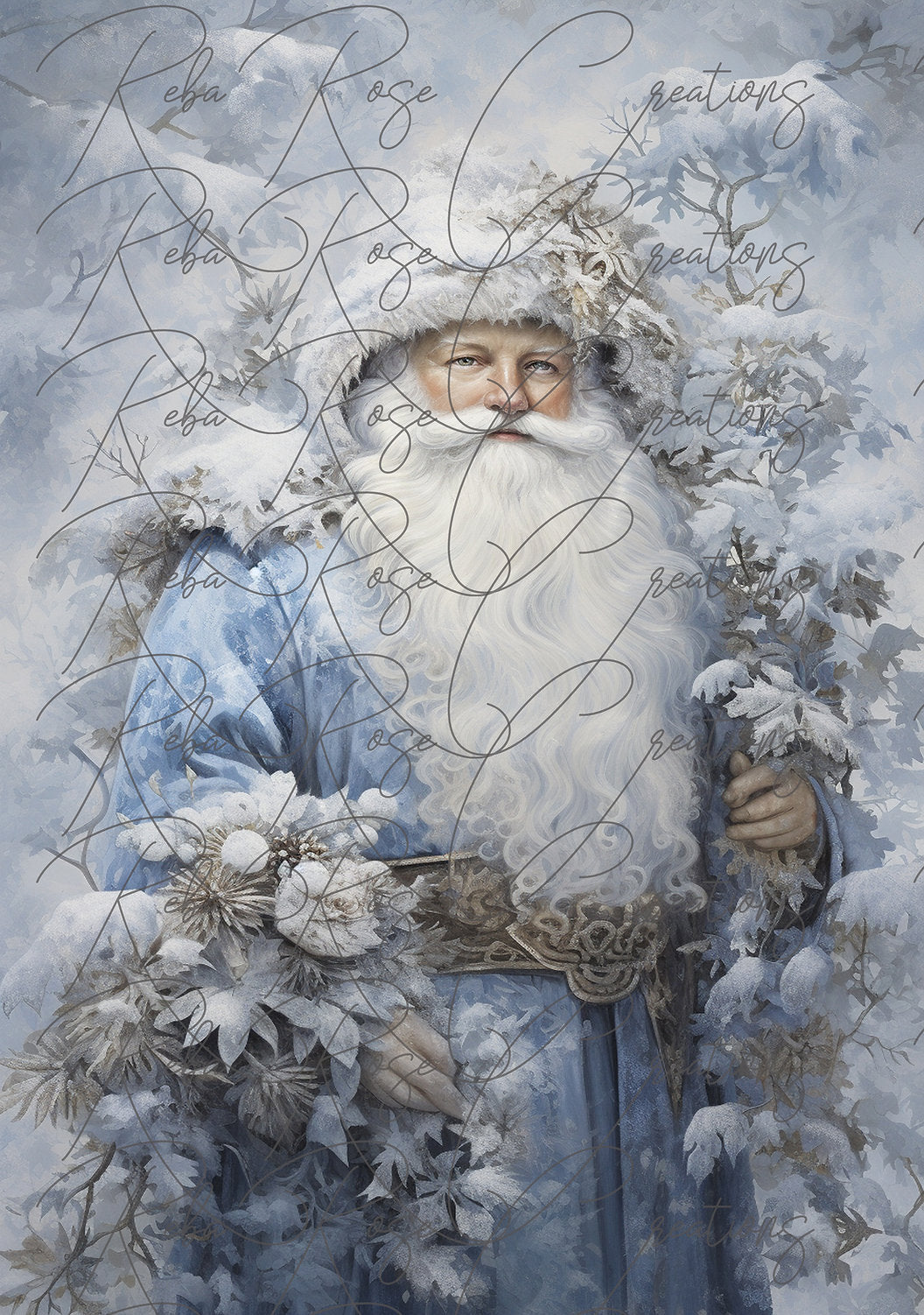 Reba Rose Creations, Rice Paper for Decoupage, Mixed Media, Nostalgic Santa Claus, Blue, Christmas, 105, A3, 11.7 x 16.5