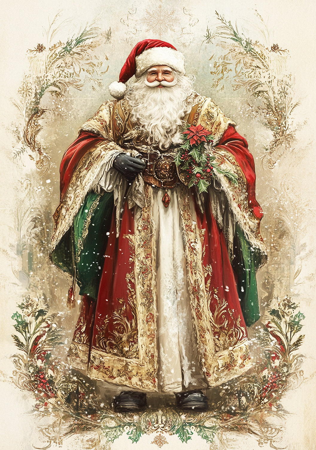 Reba Rose Creations, Rice Paper for Decoupage, Mixed Media, Nostalgic Santa Claus, Old World Style, Christmas, 87, A3, 11.7 x 16.5