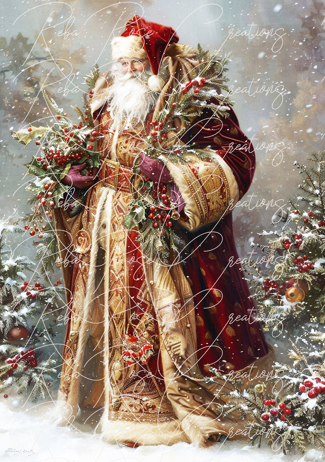 Reba Rose Creations, Rice Paper for Decoupage, Mixed Media, Nostalgic Santa Claus, Velvet, Christmas, 108, A3, 11.7 x 16.5