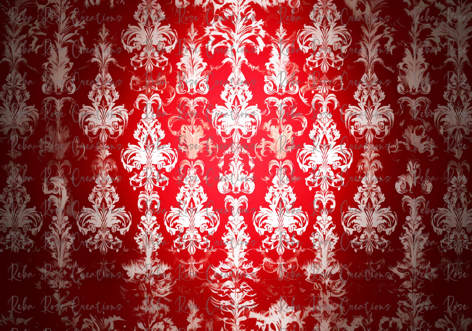Reba Rose Creations, Rice Paper for Decoupage, Mixed Media, Red, White, Damask Wallpaper, Background, A3, 11.7 x 16.5