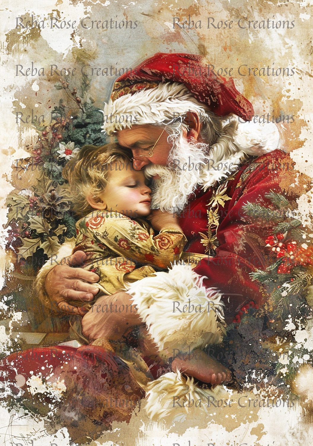 Reba Rose Creations, Rice Paper for Decoupage, Mixed Media, Santa, Child, Hugs, Christmas, 45, A3, 11.7 x 16.5