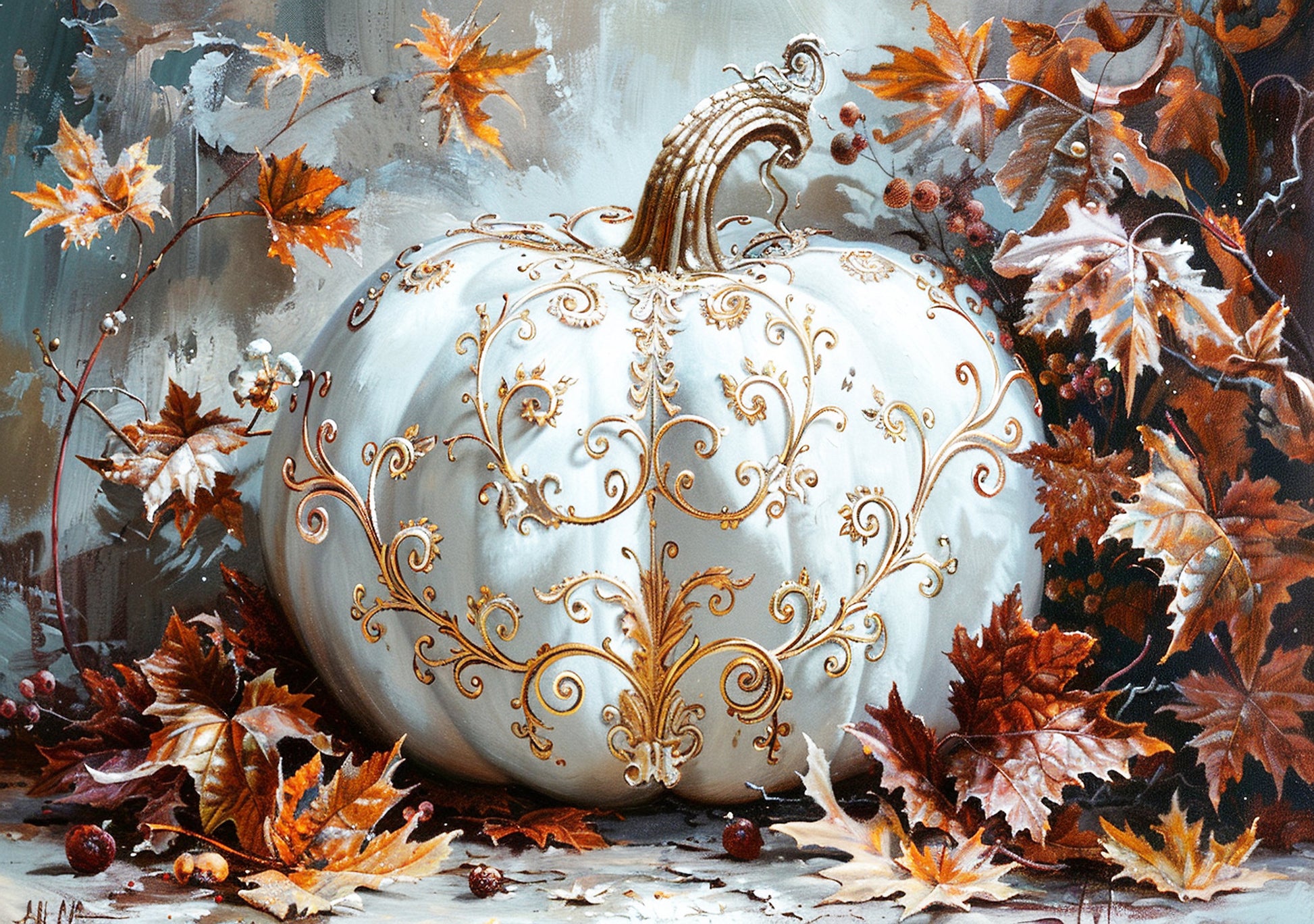 Reba Rose Creations, Rice Paper for Decoupage, Mixed Media, White, Gold Scroll Pumpkin, Fall, Thanksgiving, A3-72, 11.7 x 16.5