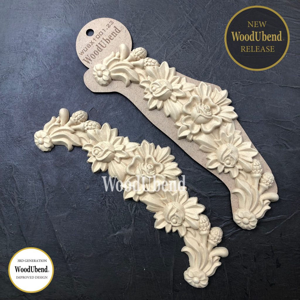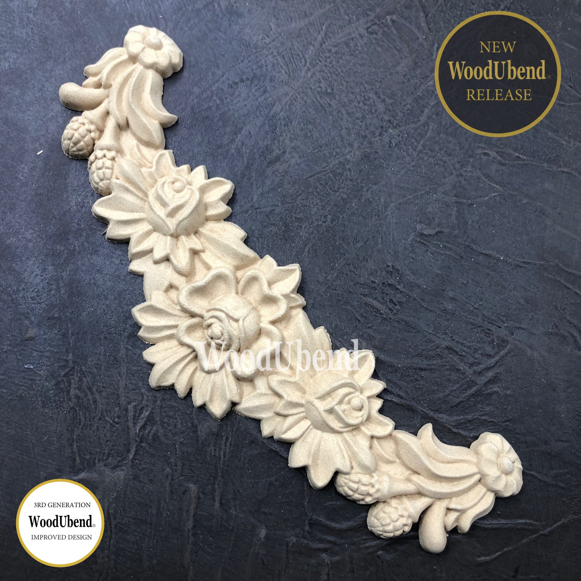 WoodUBend, Pack of Two, Floral Pediments, Molding, Trim, Head Pliable, Flexible, WUB6041, 5×32.5cm.