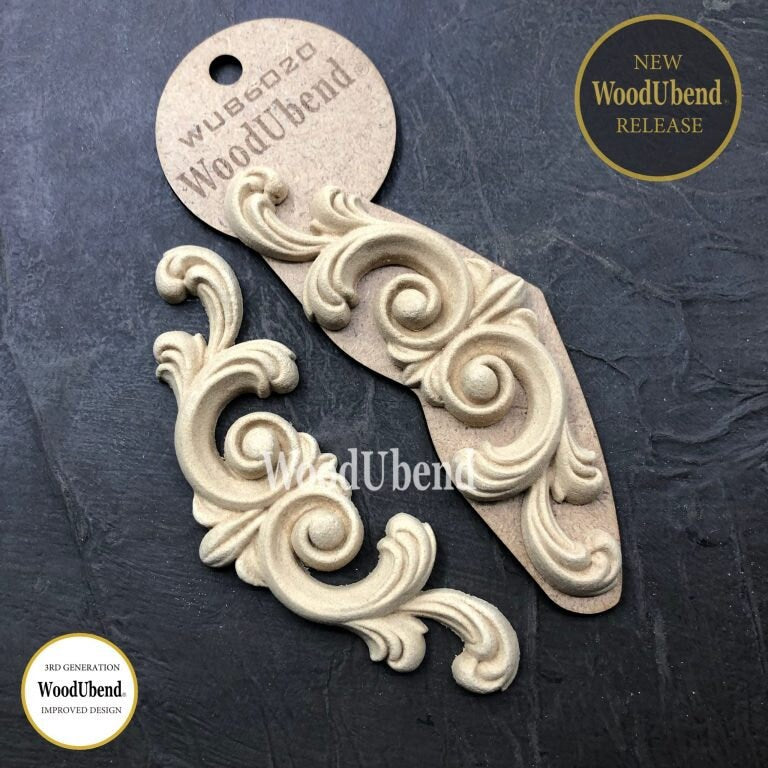 WoodUbend, Pack Of Two Pediments, Scrolls, Flourishes, WUB6020, 5 × 13.4 cm
